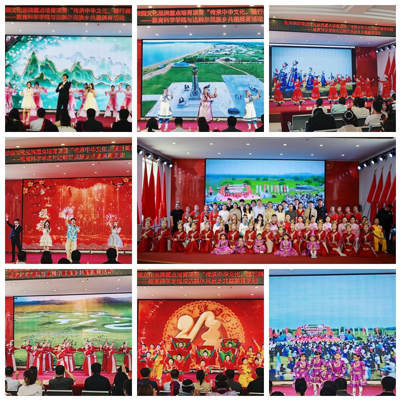 文艺演出在开场舞《绢舞青春》中点燃全场,坤河乡村民带来的舞蹈《哈尼卡》,将达斡尔族纸偶艺术融入肢体语言;歌舞《上春山》以诗意表达勾勒美育图景;《自豪我是达斡尔人》一曲高亢的民族歌曲将演出推向高潮;舞蹈《五样热情歌》洋溢着劳动生活的炽热;从《最亲的人》的脉脉亲情,到《奢香夫人》的传奇叙事;从《年少的你啊》的青春悸动,到《相亲相爱一家人》的和谐共鸣,教科院美育实践团的歌曲串烧如一幅文化长卷,为坤河乡的文化传承注入了新的活力与希望;压轴登场的达斡尔族舞蹈《鲁日格勒》,以其独特的民族风情和精湛的舞蹈技艺,赢得了现场观众的阵阵掌声。整场演出既有学校特色的艺术创作,也有乡邻们带来的本土舞蹈,让千年民族文化在动静交织中焕发新生。