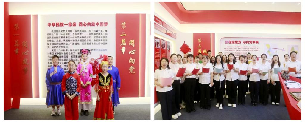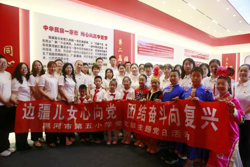 本网讯(记者 黄思翼)近日,黑河市第五小学师生走进我校铸牢中华民族共同体意识主题展馆开展参观学习活动。活动中,学生们以朗诵和歌唱的形式展现了新时代青少年对伟大祖国的无限热爱与赤诚情怀。党员教师们齐唱《爱我中华》,彰显了新时代教育工作者铸牢中华民族共同体意识、培育担当民族复兴大任时代新人的坚定信念和责任担当。