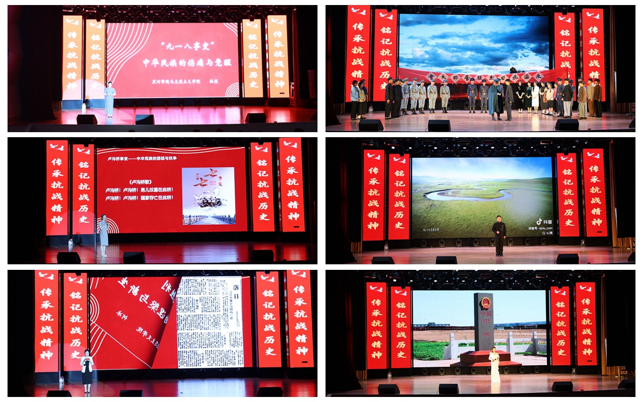 本网讯(特约记者 张萌)为纪念中国人民抗日战争暨世界反法西斯战争胜利 80 周年,弘扬伟大抗战精神,6 月 18 日,我校马克思主义学院以“铭记抗战历史 传承民族精神”为主题,创新推出艺术思政课,用艺术与思政交融的独特方式,为全校师生带来一堂直抵心灵的爱国主义教育课。黑河市委宣传部,黑河市教育体育局,黑河市教师发展学院,爱辉区教师进修校相关负责同志,在校领导班子成员,我校相关部门、二级学院负责人及师生代表千余人现场聆听观摩。