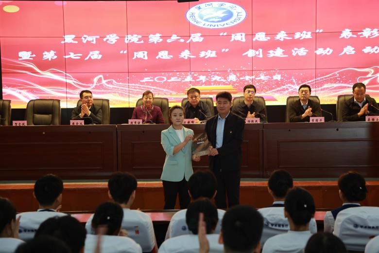 9月17日,学校第六届“周恩来班”表彰暨第七届“周恩来班”创建活动启动仪式在求知楼学术报告厅举行。周恩来总理侄女、第十一至第十三届全国政协委员周秉建,中国中共文献研究会周恩来思想生平研究分会秘书长李清平,中国中共文献研究会周恩来思想生平研究分会理事、周恩来班网站负责人贺金凤出席会议。学校党政领导班子成员,二级学院领导班子成员、全体辅导员、学生代表参加启动仪式,仪式由校党委副书记姜国玉主持。