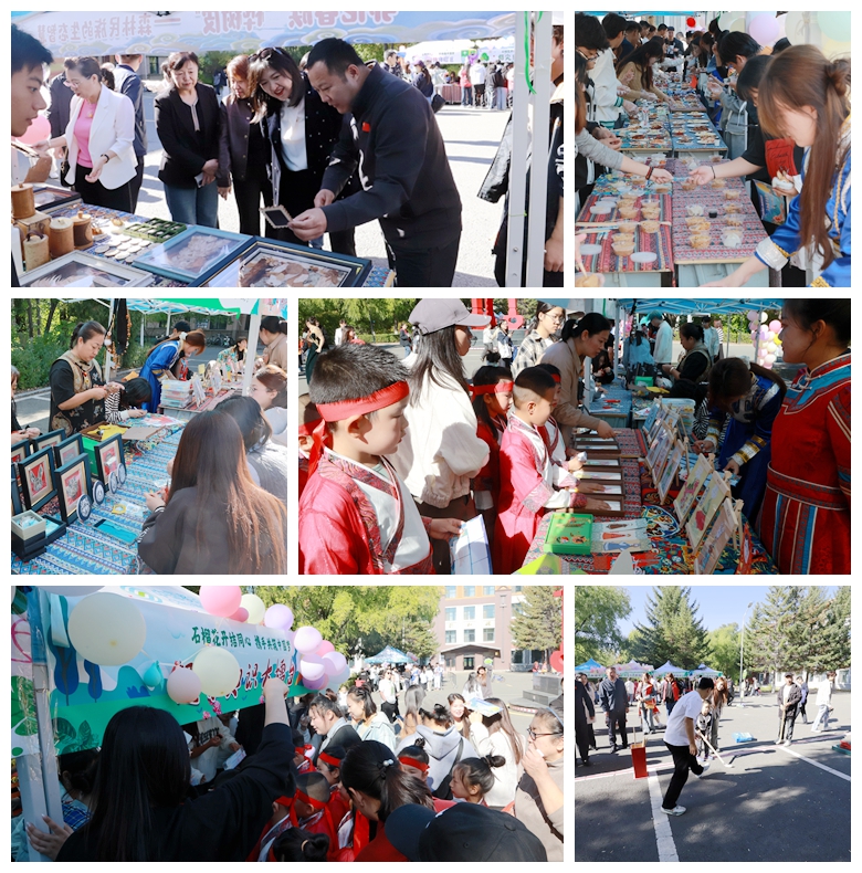 民族文化节共设置七个展示体验活动区,并特别邀请爱辉区非遗传承人亲临活动现场,为师生传授非遗手作的匠心技艺。师生们穿梭其中,体验达斡尔族“哈尼卡”纸偶、赫哲族“鱼皮画”、鄂伦春“桦皮”手工、满族剪纸等非遗技艺,欣赏“瑷珲花灯”手工艺制品,试穿民族服饰打卡留念,体验民族特色游戏项目,品尝民族风味美食,参与趣味知识竞答,现场气氛热烈。