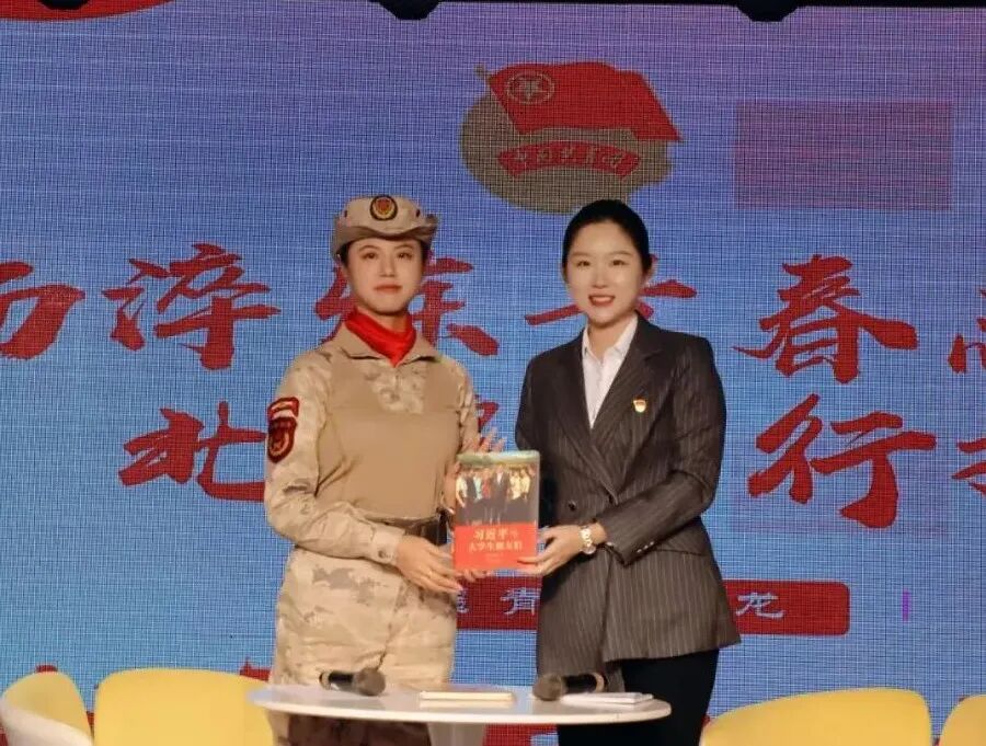现场,主持人向田煦萌赠送《习近平与大学生朋友们》及“青年大学习”笔记本,鼓励她继续发扬阅兵精神。