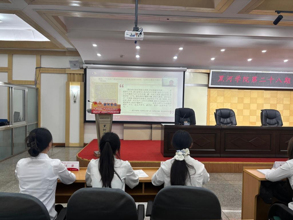 仪式在庄严的团歌中拉开帷幕,开班式上宣读了《关于黑河学院第二十七期“青年马克思主义者培养工程”大学生骨干培训班准予结业和表彰优秀学员的决定》,并为第二十八期培训班班主任颁发聘书。