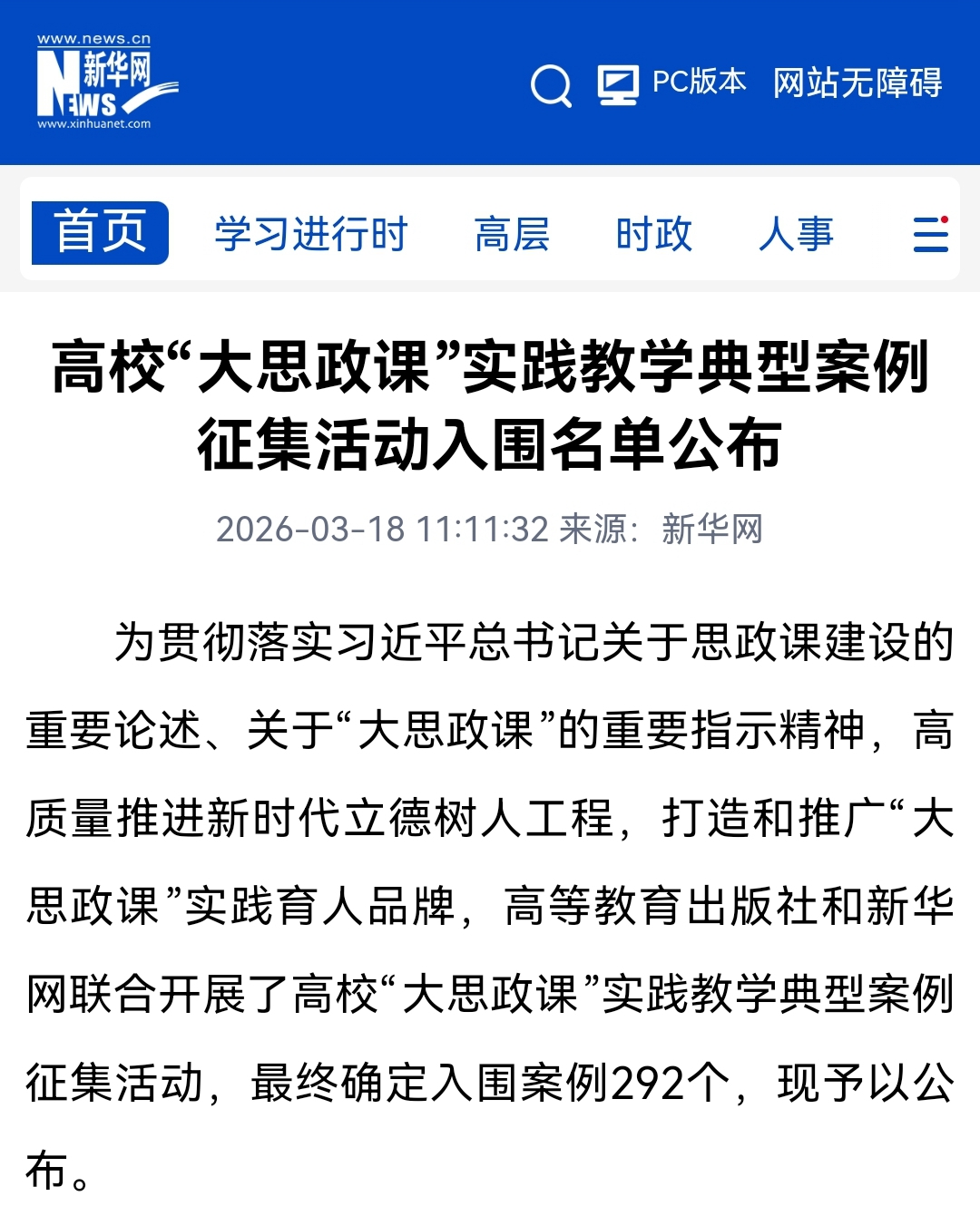 【十五五开局】喜报!学校成功入围全国高校“大思政课”实践教学典型案例
