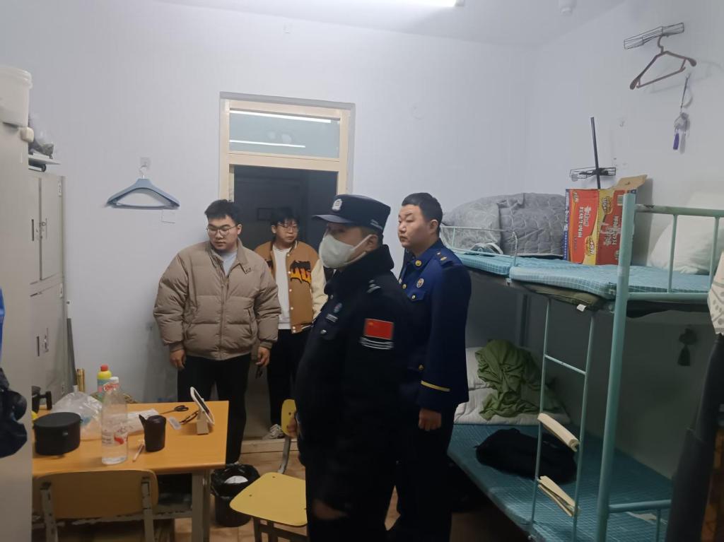 检查中,边境派出所民警与保卫处工作人员重点查验学生寝室管制刀具、违规物品及治安防范措施落实情况,结合案例普及法规,提醒学生增强防范意识。消防救援大队指战员重点检查消防设施器材、疏散通道和安全出口情况,排查寝室大功率电器使用、私拉乱接电线等消防隐患。学工部工作人员及各学院辅导员配合检查,与学生交流,了解生活情况,讲解宿舍安全规范,引导学生遵守校规、维护住宿秩序。
