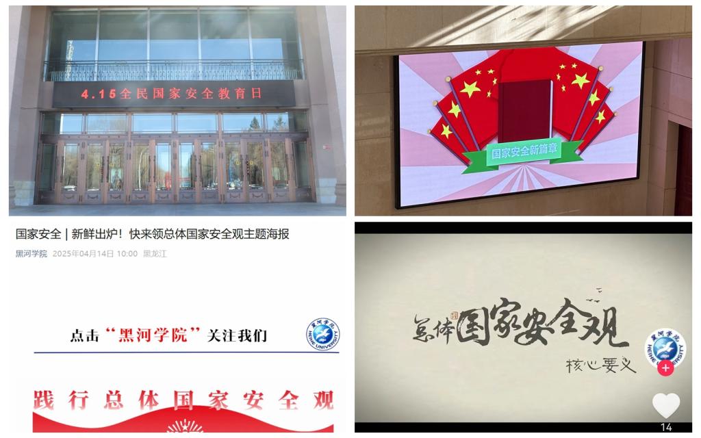 锻实功促实效 有效增强意识能力。开展“三个一”实践活动,推进实践育人走深走实。一系列宣讲辅导,联合黑河军分区和大黑河岛边境派出所召开国家安全及校园安全宣讲会,举办“强化底线思维与防范化解风险——新时代学生工作的难点和焦点”辅导员沙龙,进一步夯实校园安全治理基础。一系列主题活动,举办了“全民国家安全教育日升旗仪式”活动,组织全校学生参加“全国大学生国家安全知识答题”活动,还开展了创作国家安全教育主题剪纸作品等形式多样的主题活动,引导师生深入学习践行总体国家安全观。一堂必修课,组织观看学习国家安全部和中央广播电视总台共同制作的特别节目《2025全民国家安全教育公开课》和《千万师生同上一堂国家安全教育课》主题公开课,推进国家安全教育深入人心。