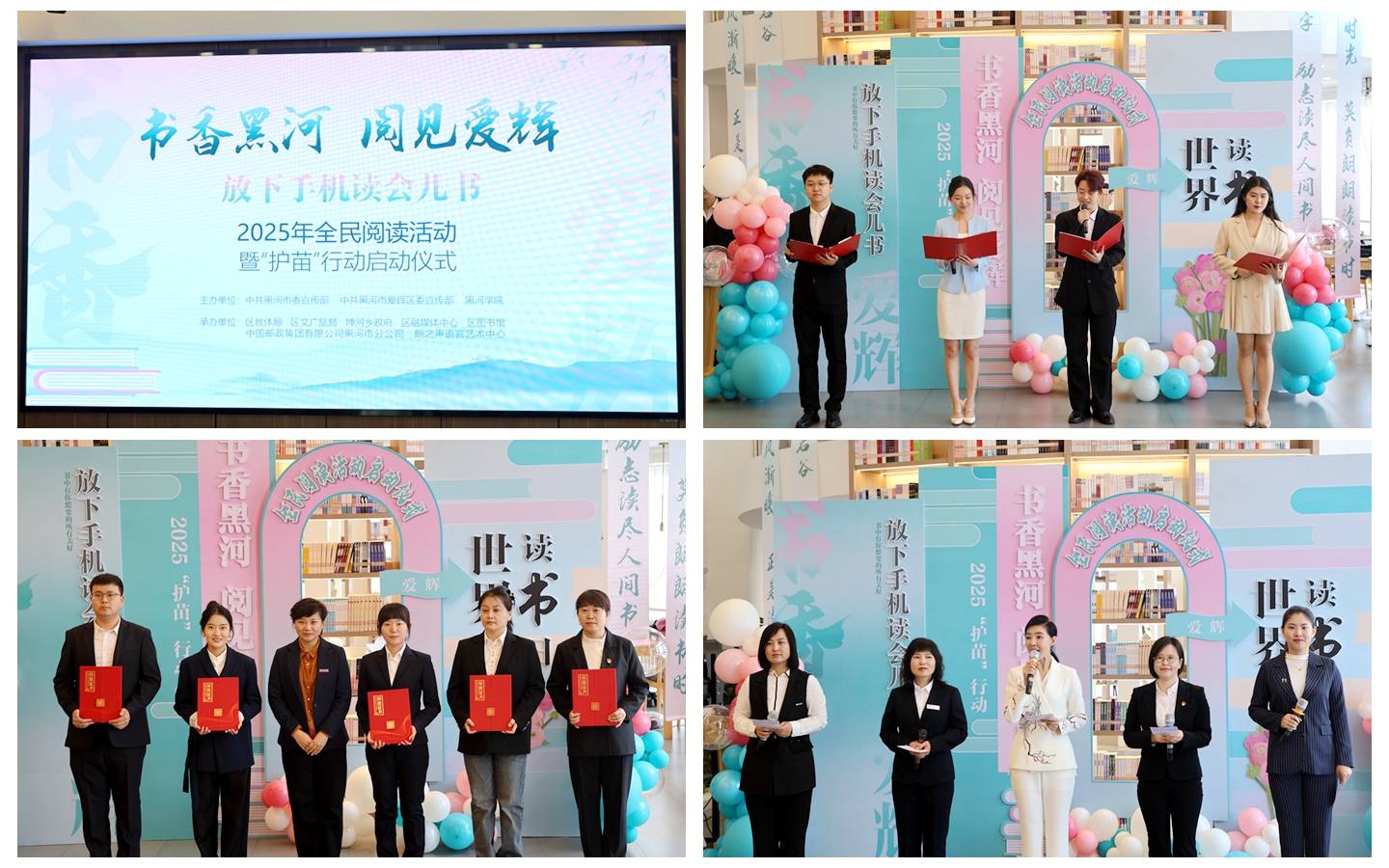 本网讯(记者 陈虹旭 摄影 胡青山)4月20日,为积极响应全民阅读号召,营造浓厚书香氛围,同时深入推进“护苗”行动,呵护青少年健康成长,我校与黑河市委宣传部、爱辉区委宣传部在爱辉区图书馆联合举办了“书香黑河 阅见爱辉——放下手机读会儿书”2025年全民阅读活动暨“护苗”行动启动仪式。我校师生以多种形式积极参与,为活动增添了丰富色彩与深厚内涵。