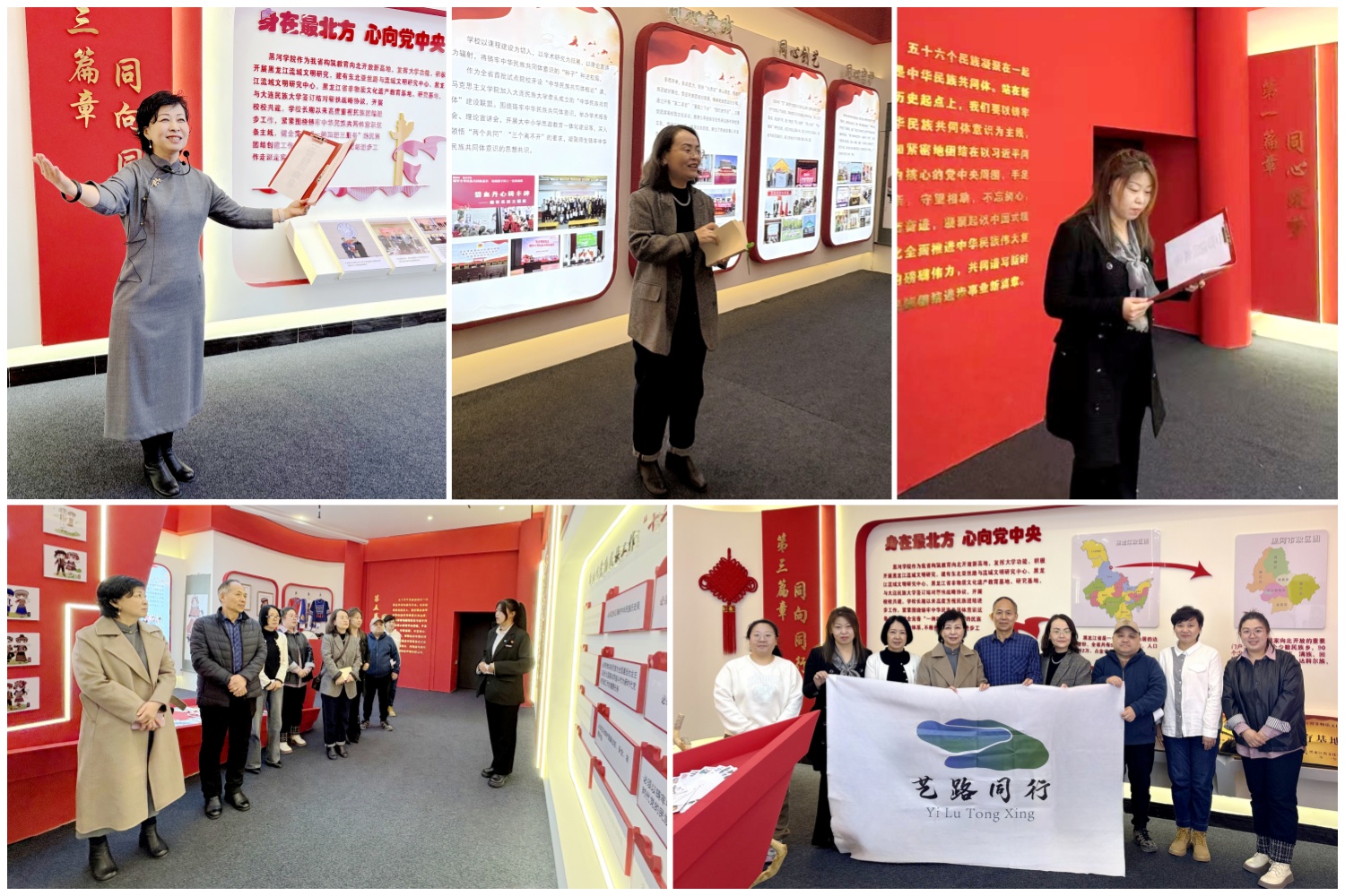 会后,为迎接第30个世界读书日,与会人员在学校铸牢中华民族共同体意识主题展馆开展了“艺路同行·一起阅读”同心诵读会,各民主党派教师朗诵了精品文章,分享了阅读体会,推荐了心仪好书,并共同参观主题展厅,加深对中华民族共同体意识的理解和认同。