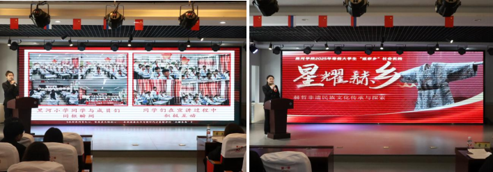 会上,各学院实践团队及个人围绕实践背景、活动成果、特色亮点等方面依次上台进行汇报,他们用生动的视频、详细的数据呈现了实践中的所学、所思、所悟、所获。实践内容涵盖红色文化、非遗传承、科技智能、民族团结等多个领域,充分展现了我校学子求真务实、积极探索的实践风采。据悉,今年寒假我校4152名学生共组建810项团队进行集中实践,1334名学生参与个人分散实践,总计近6000名学生广泛开展“返家乡”社会实践,用实际行动展现了北疆学子的青春风采和责任担当。
