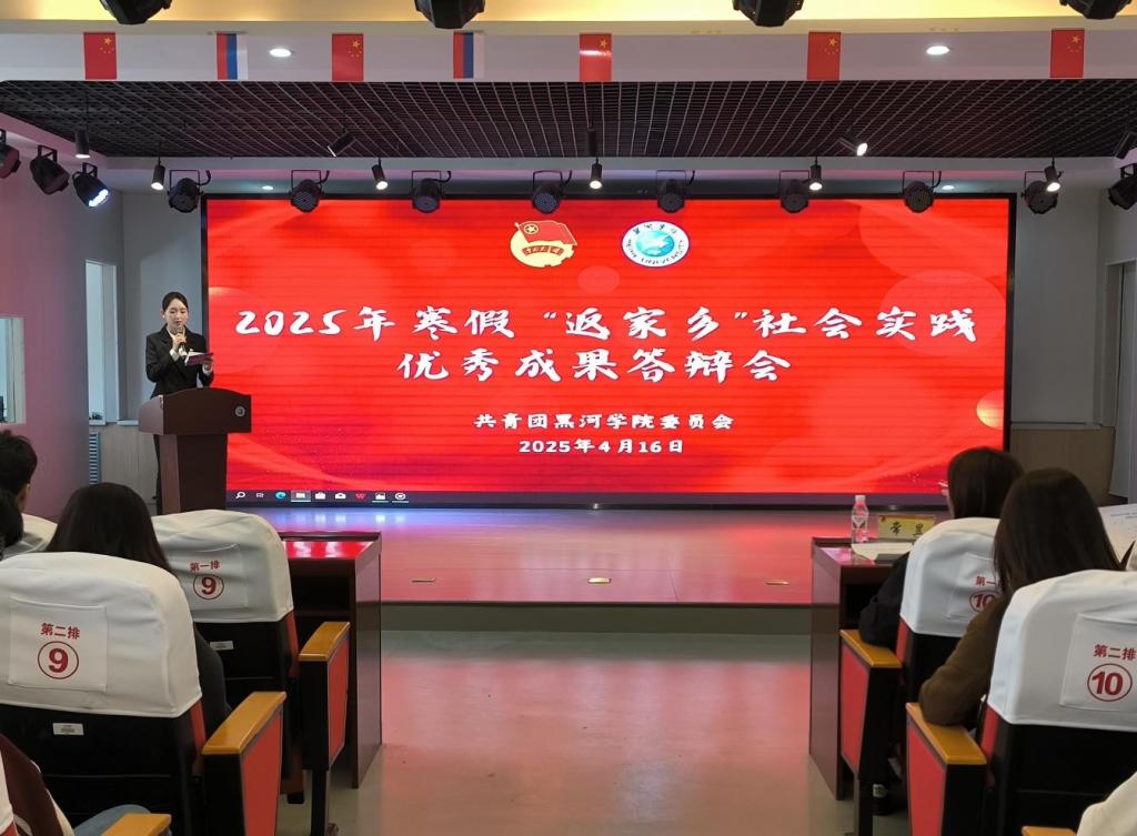本网讯(特约记者 常昱)为深入学习贯彻党的二十届三中全会精神,落实习近平总书记关于青年工作的重要思想,提高学校共青团实践育人工作成效,4月16日,我校寒假“返家乡”社会实践优秀成果答辩会在中俄青创基地如期举行,黑河市委社会工作部、共青团黑河市委员会、校团委相关工作负责人出席现场并担任评委,各二级学院社会实践指导教师、学生近300人观摩答辩会。